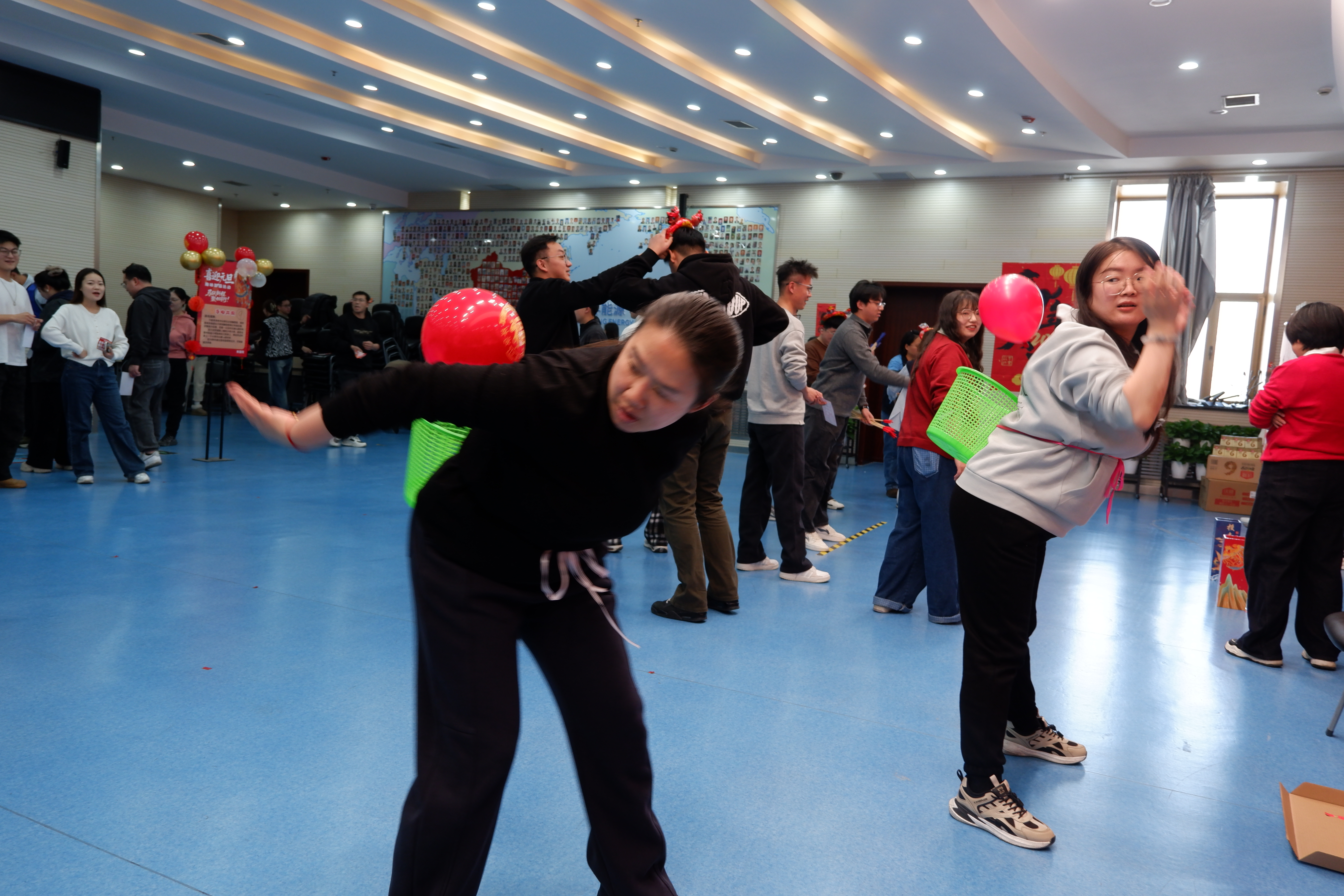 活動(dòng)現(xiàn)場布置喜慶溫馨,共設(shè)置九大趣味游戲項(xiàng)目。在“手腳并用”“頂杯夾紙”等項(xiàng)目中,員工們展現(xiàn)專注與協(xié)調(diào);“投壺”“踢毽子”“轉(zhuǎn)呼啦圈”等傳統(tǒng)游戲則讓大家重拾童趣;“蒙眼貼鼻”環(huán)節(jié)笑料不斷,而“背氣球”項(xiàng)目則充分體現(xiàn)了團(tuán)隊(duì)協(xié)作的樂趣,將現(xiàn)場氣氛推向高潮。